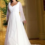 Short wedding dresses are in style in 2019 for good reason. This flirty and versatile design works for outdoor and casual weddings or a more formal event. To shake things up add a little color for flair like yellow trim or a subtle champagne band. Choosing a tea length hem means you can have fun with your shoes and show off your calves. Designs with lace sleeves give the dress a demure look while still keeping it suitable for warm weather weddings. This year’s plus size styles for short wedding dresses look effortless and chic.